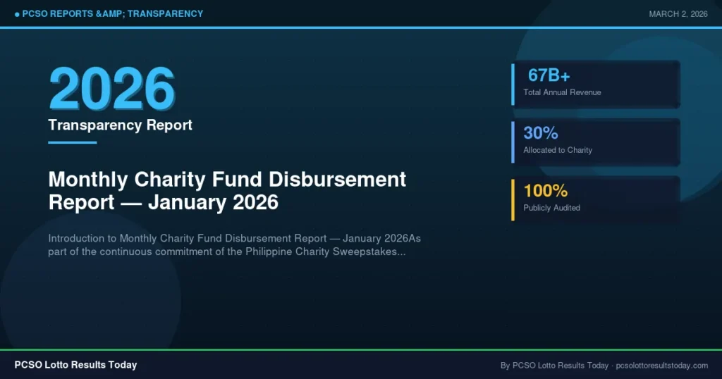 As part of the continuous commitment of the Philippine Charity Sweepstakes Office (PCSO), we are pleased to bring you comprehensive updates regarding monthly charity fund disbursement report — january 2026. Ensuring transparency and public trust remains our highest priority.