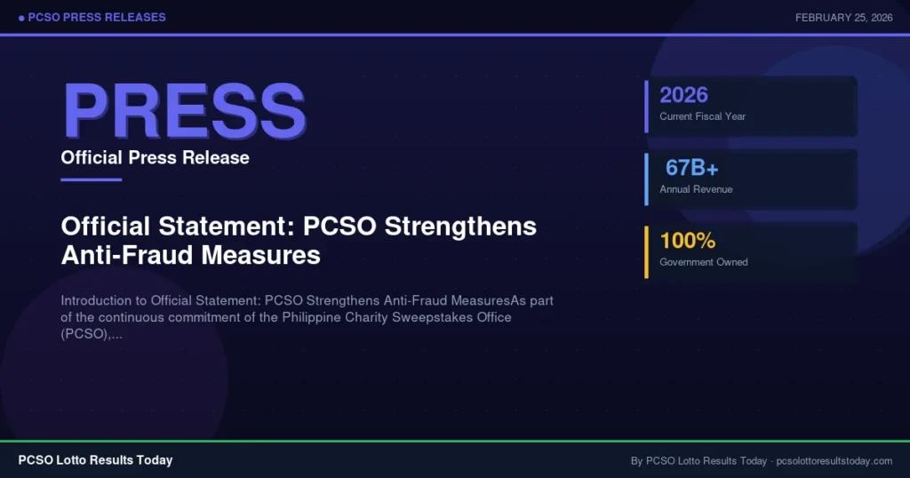 As part of the continuous commitment of the Philippine Charity Sweepstakes Office (PCSO), we are pleased to bring you comprehensive updates regarding official statement: pcso strengthens anti-fraud measures. Ensuring transparency and public trust remains our highest priority.