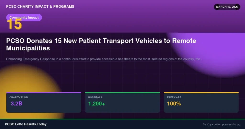 Procured through the robust 30% Charity Fund sourced directly from daily lottery ticket sales, this initiative underscores the agency’s unyielding mission. When you play authorized PCSO games, you help deploy these life-saving vehicles nationwide.