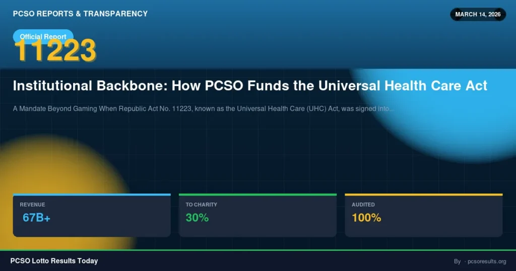 When Republic Act No. 11223, known as the Universal Health Care (UHC) Act, was signed into law, it required massive institutional funding to guarantee equitable access to quality health services for all Filipinos. The Philippine Charity Sweepstakes Office (PCSO) was designated as one of the primary national funding pillars.